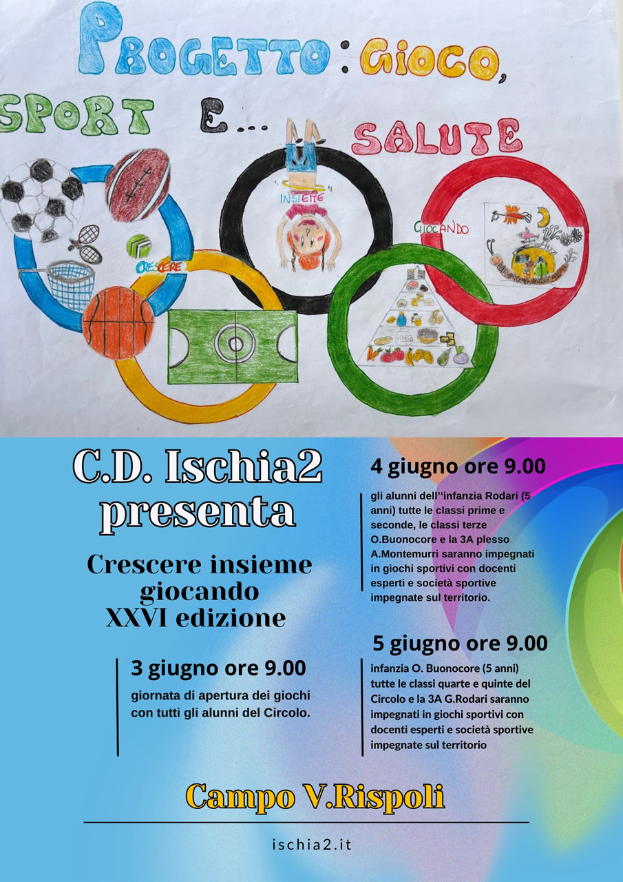 Il Circolo Didattico Ischia 2 presenta “Crescere Insieme Giocando XXVI edizione” il 3-4-5 giugno 2024 presso il campo V. Rispoli